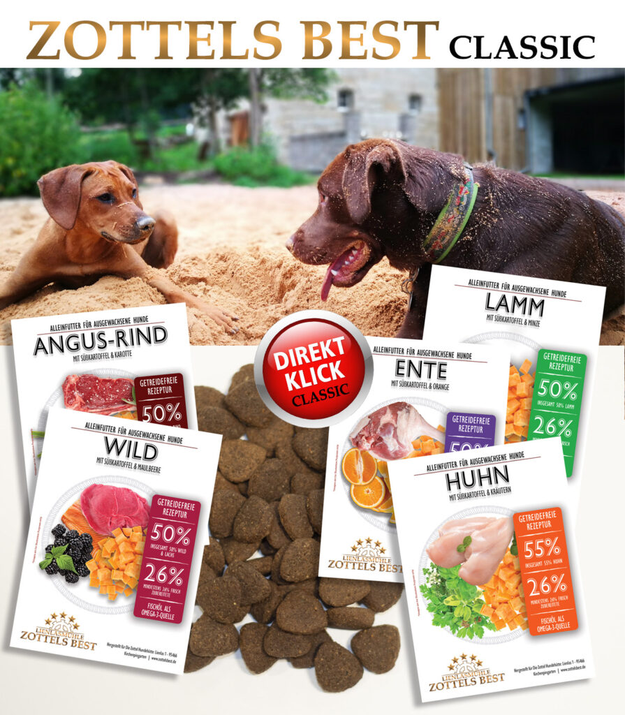 ZOTTELS BEST steht für Futter, das mit viel Sorgfalt, Erfahrung und echter Leidenschaft entwickelt wurde. Wir wählen unsere Rohstoffe bewusst aus und legen Wert auf eine Herstellung, die die natürlichen Eigenschaften der Zutaten bewahrt. Unser Ziel: Ein Futter, das zu Deinem Hund passt, ihn gut versorgt und ihm jeden Tag Freude macht.