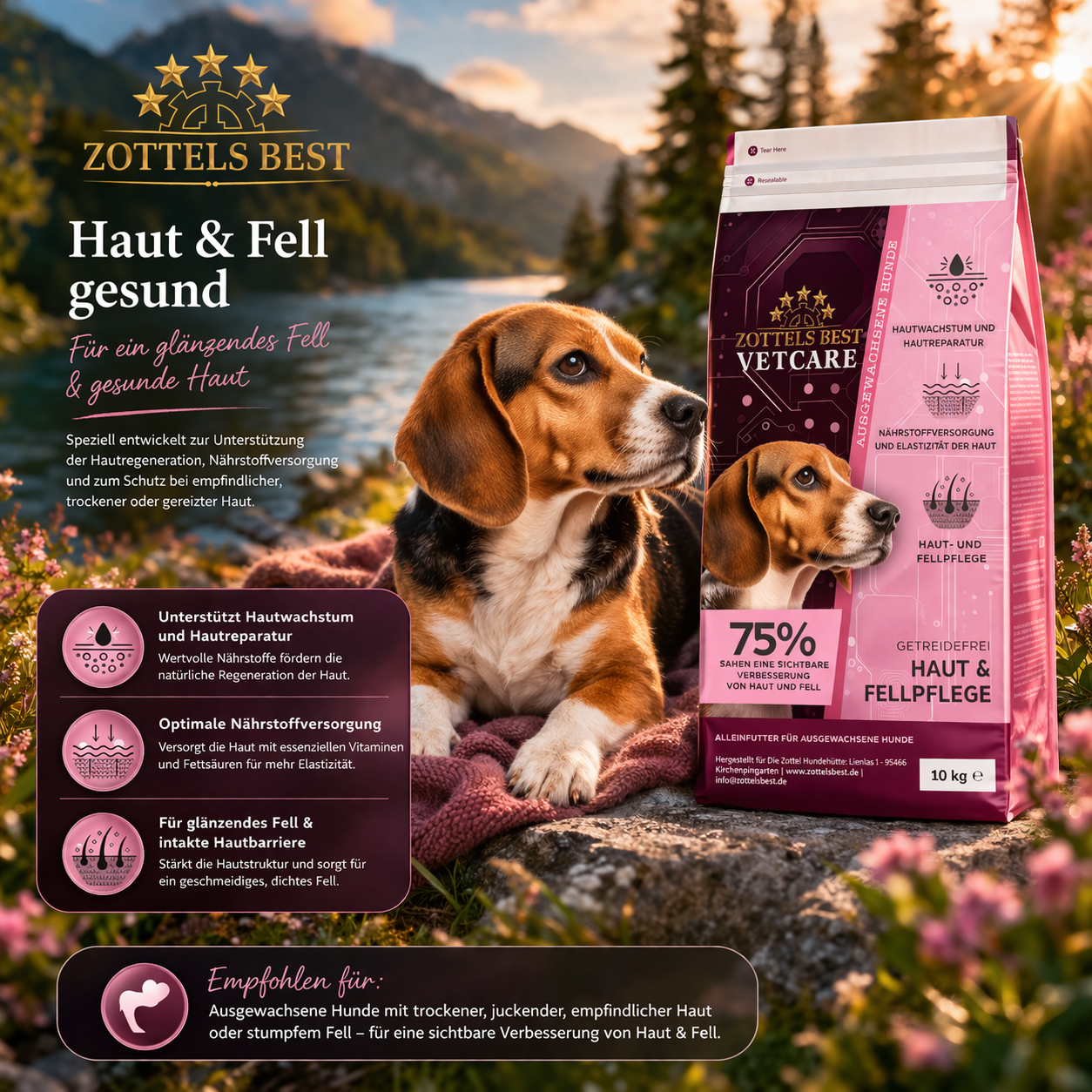 Der Zustand und das Aussehen der Haut und des Fells eines Hundes dienen als unmittelbare Indikatoren für seine allgemeine Gesundheit und sein Wohlbefinden. Hautkrankheiten bei Hunden werden von Tierärzten als ein großes Problem in der Kleintierpraxis angesehen, wobei schätzungsweise bis zu 30 % der Hundepopulation weltweit von Hautproblemen betroffen sind. Ihre brandneue Peptide+ Skin & Coat-Diät wurde speziell entwickelt, um die Gesundheit der Haut und des Fells zu unterstützen. 75 % der Tierhalter, die an den Fütterungsstudien teilnahmen, berichteten von Verbesserungen des Haut- und Fellzustands ihrer Hunde (Vista Pet (2021) Studienbericht R20DG1218 Trockenfutterstudie für Hunde).